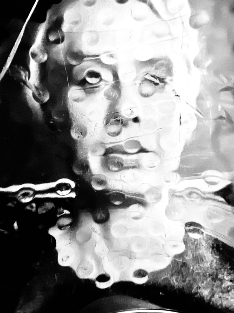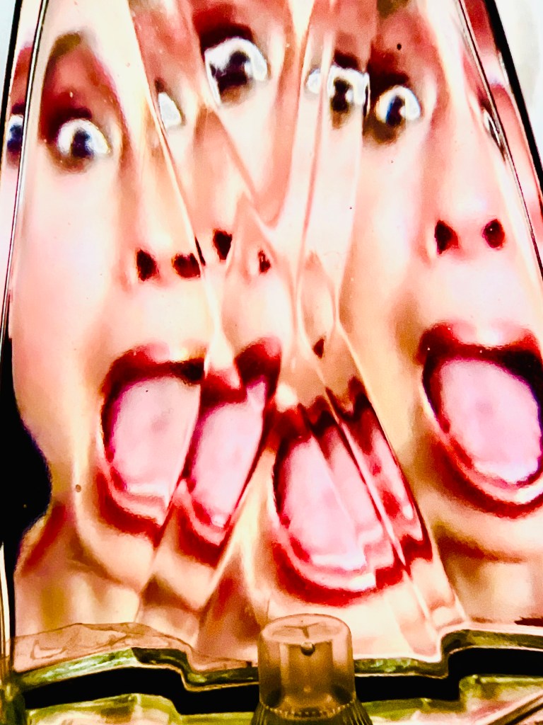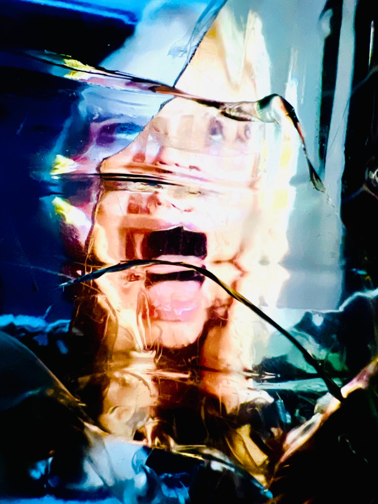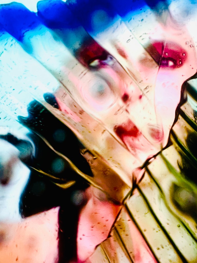 Collin brought his mental creation to fruition by finding different types of glassware, in the form of jars, drinking glasses, etc. He then placed the objects between his camera lens and his computer monitor.